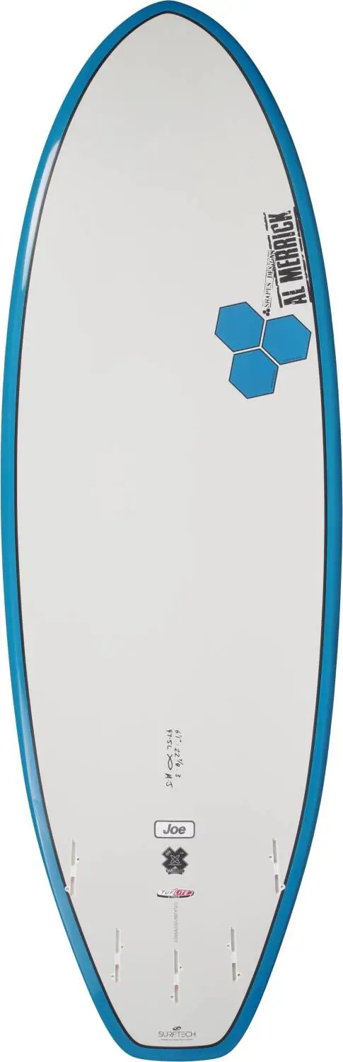 The Average Joe by Channel Island is simple and fun to ride surfboard that gets the job done. It features a varying concave, that starts out mild for the first 1/3 of the board and then turns deep. This creates a fun and foot-hooking pocket to play around in.