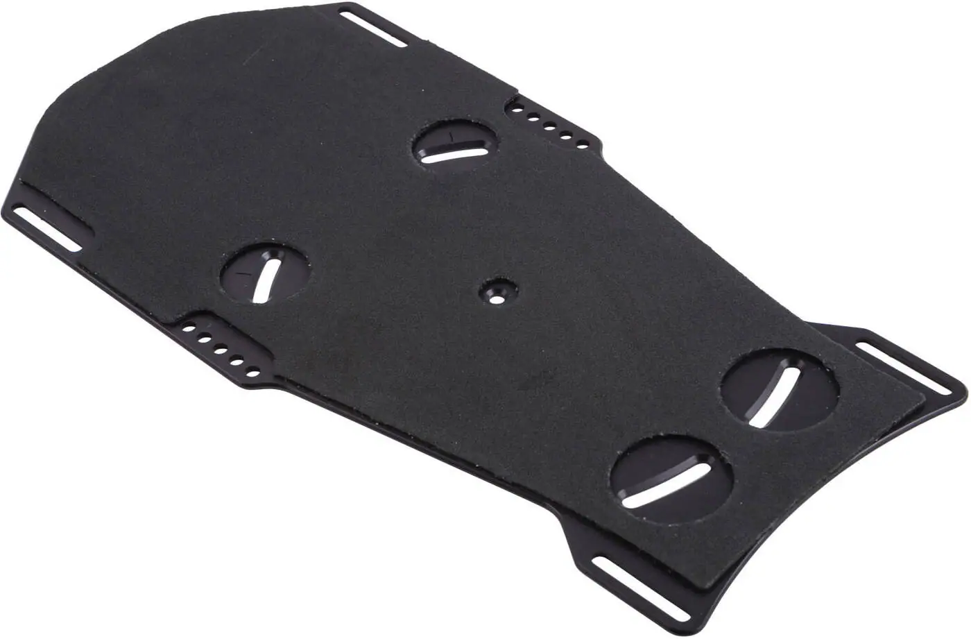 This binding plate for the front binding from Radar is made from Aluminum.