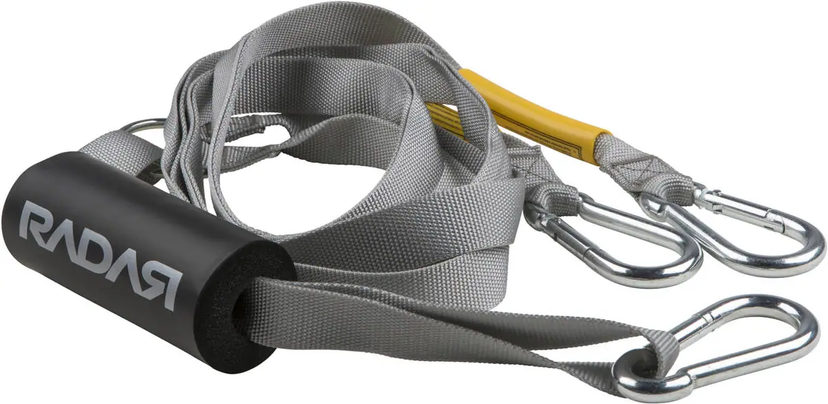 The Water Ski Boat Tow Harness by Radar features a 1″ nylon webbing and heavy-duty carabiners for a rock-solid and reliable connection.